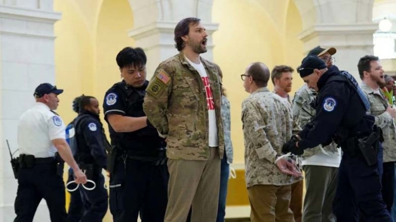 যুক্তরাষ্ট্রের সাবেক সেনা সদস্যরা ইরানে নতুন করে কোনো যুদ্ধ চান না। এই দাবির প্রেক্ষিতে ওয়াশিংটন ডিসিতে মার্কিন কংগ্রেস ভবনে বিক্ষোভ করেছেন তারা। সোমবার (২০ এপ্রিল) আয়োজিত এই বিক্ষোভে স্থায়ীভাবে ইরান যুদ্ধ বন্ধের দাবিতে সরব হন সাবেক সেনাসদস্যরা। অপ্রীতিকর পরিস্থিতির এক পর্যায়ে পুলিশ অন্তত ৬০ জনকে আটক করেছে।